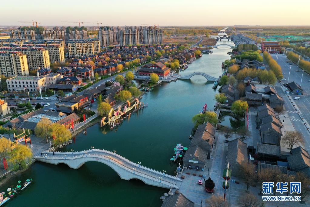 4月13日拍摄的河北省唐山市丰南区唐津运河风光(无人机照片)。