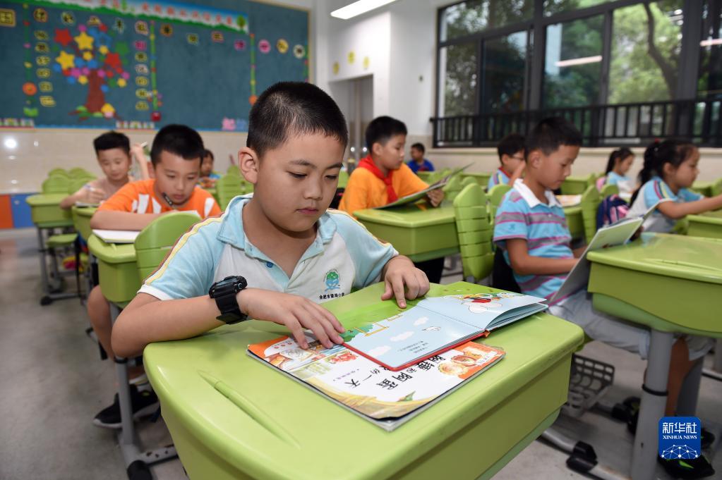 9月2日,在合肥市望湖小学洞庭湖路校区,学生们在课后服务托管班里阅读。
